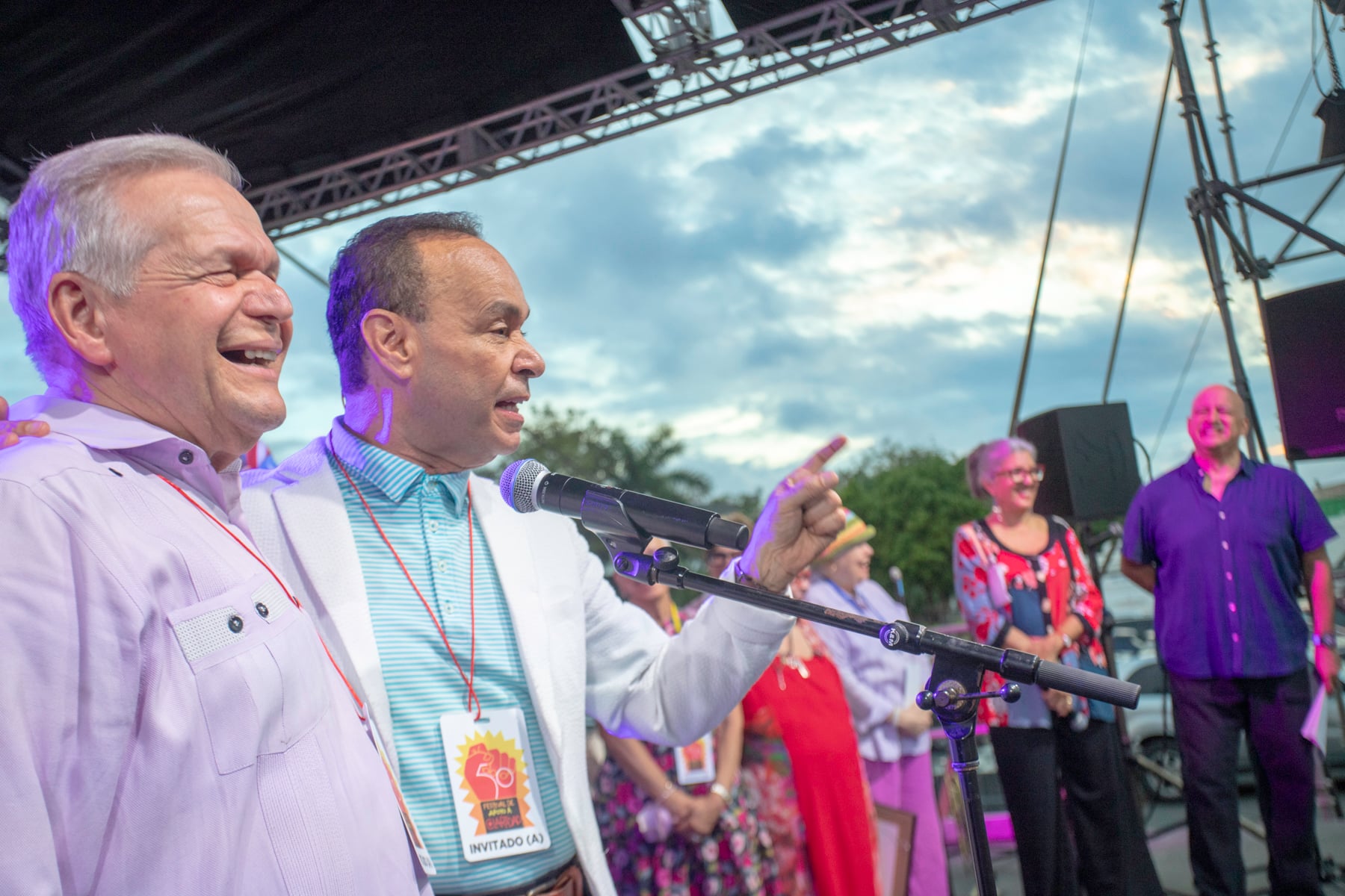 Desde el mismo escenario, el periodista y animador de la tarde, Manuel Ernesto Rivera, pasó el batón a Jacobo Morales y Elga Castro. Hace 50 años, en aquel Festival que organizó Vega Figueroa en Villa Capri, Morales animó la misma actividad.