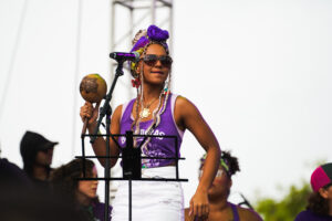 Ante el bullicio consistente de la audiencia y la música, la voz de Velázquez se extraviaba entre silbidos y aplausos. El barullo de artistas incluyó, también, al rapero Luis Díaz de Intifada, Chamir Bonano, el grupo Chuwi y, como cierre a la primera parte de la actividad, Fiel a la Vega. Todos estos artistas interpretaron temas relacionados con la identidad nacional y los estragos de la condición colonial que sufre Puerto Rico. Como “ñapa” a esta ristra de artistas, el cantautor de la Nueva Trova Roy Brown entonό “Boricua en la luna” junto a Tito Auger.