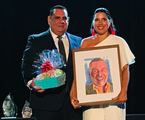 Para este primer premio con su nombre estampado, se organizó una pequeña ceremonia de homenaje en la cual participó el saxofonista puertorriqueño y yerno de Elliott, Miguel Zenón, quien interpretó magistral y emotivamente “A mi manera”, mientras se proyectaba un video con imágenes de Elliott en distintos momentos de su vida. En un plano personal, para mí fue sumamente emotivo ver esas imágenes de Papi en distintas facetas de su carrera, mientras escuchaba a mi esposo honrarlo y homenajearlo con una canción que siempre le gustó, al igual que a mi Madre, pues era una especie de himno y moto de vida, mientras estaba rodeada del cariño de muchos de sus colegas. Quienes lo conocieron, saben que parte del secreto de esa sonrisa eterna era “hacer las cosas a su manera”, básicamente hacer lo que le diera la gana, lo que le hacía feliz y lo llenara. Así fue que ejerció de periodista deportivo teniendo un diploma de ingeniero industrial, así se mantuvo en CLARIDAD aún recibiendo presiones y trabajó en lo que quiso con mucha pasión. Incluso que se incluyera su firma como parte del video-homenaje, fue evidencia de esa personalidad única y característica, Papi casi tenía su propio “Font’’ y su firma característica en letra de molde; fue linda verla con un corazón encima de la “i”, muy a su manera. Si el homenaje fue emotivo, lo fue aún más el conocer que la primera periodista galardonada con el Premio Elliott Castro fue Sara del Valle, periodista que comenzó en CLARIDAD y quien fuera amiga y pupila de Papi. Entregarle el premio a Sara fue muy lindo y emocionante.