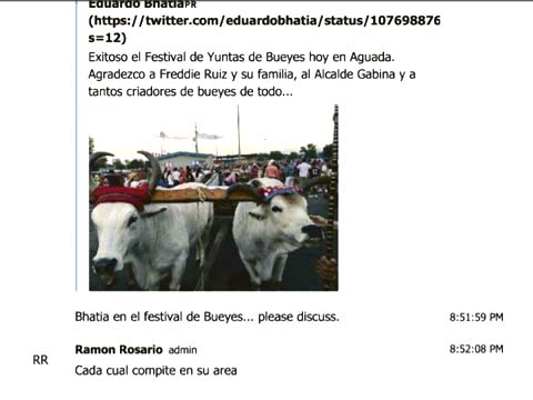 Luego que se dio a conocer todo el chat y se anunciaron las renuncias, Rafael Cerame afirmó que no tenía contrato alguno con el gobierno. Si esto fuera cierto, ¿quién le pagaba? Su presencia en el chat era permanente y como vemos en este extracto, hasta redactaba notas de duelo a nombre de Rosselló.