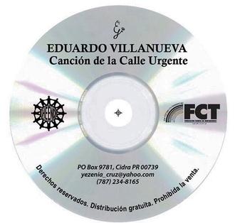 Ahora mismo está en procesos de publicación circulación difusión la más reciente aportación de Eduardo Villanueva y Yezenia Cruz a la creatividad política de la inspiración musical puertorriqueña. Canción de la calle urgente es un disco de contenido exacto y fiel a su título: la trova se canta repleta de los más urgentes asuntos que están en la calle en el sentido de ser los temas más presentes y atendidos en la discusión pública de nuestro país. En este tiempo en que Puerto Rico es objeto de venta cobro trampa fraude engaño delito mentira malicia la indignación del saqueo produce en estos artistas la producción del regalo. Se trata de una grabación de composiciones originales de Villanueva que se mueve y llega a sus oyentes destinatarixs sin mediaciones de mercadeo porque se ofrece gratuitamente y se prohíbe su venta.