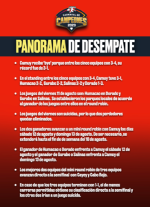 Los apoderados de los equipos activos fueron convocados a una reunión este martes 8 de agosto a las 6:00 p.m. en la sede de la Federación de Béisbol de Puerto Rico en San Juan para discutir detalles del calendario y formato de desempate.  Al momento de la redacción de este articulo no conocemos las decisiones tomadas en dicha reunión.