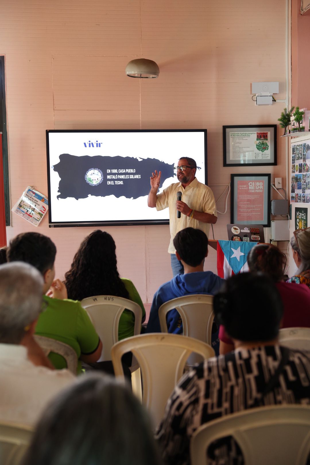 “Esta es la ruta. Debemos movernos en esa ruta. Del 1999 al 2007 hicimos una actualización (con) Gerson Beauchamp y la Universidad de Puerto Rico, donde nos movimos del 5 % al 50 % con el sol. En el 2017 modernizamos la instalación, y es la que tenemos hoy. Somos completamente libres energéticamente. Así que Casa Pueblo, como institución, ha vivido la transición energética y la escala comunitaria”, elaboró.