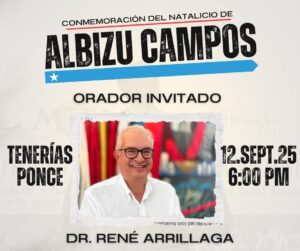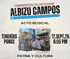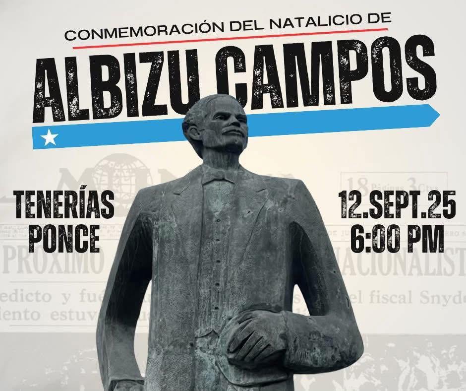 Este viernes 12 de septiembre a partir de las 6:00 de la tarde se conmemora el natalicio 134 del líder nacionalista Maestro Pedro Albizu Campos. Como todos los años los actos se llevarán a cabo en el Barrio Tenerías en Ponce. Las actividades comenzarán a partir de las seis de la tarde con el orador invitado,