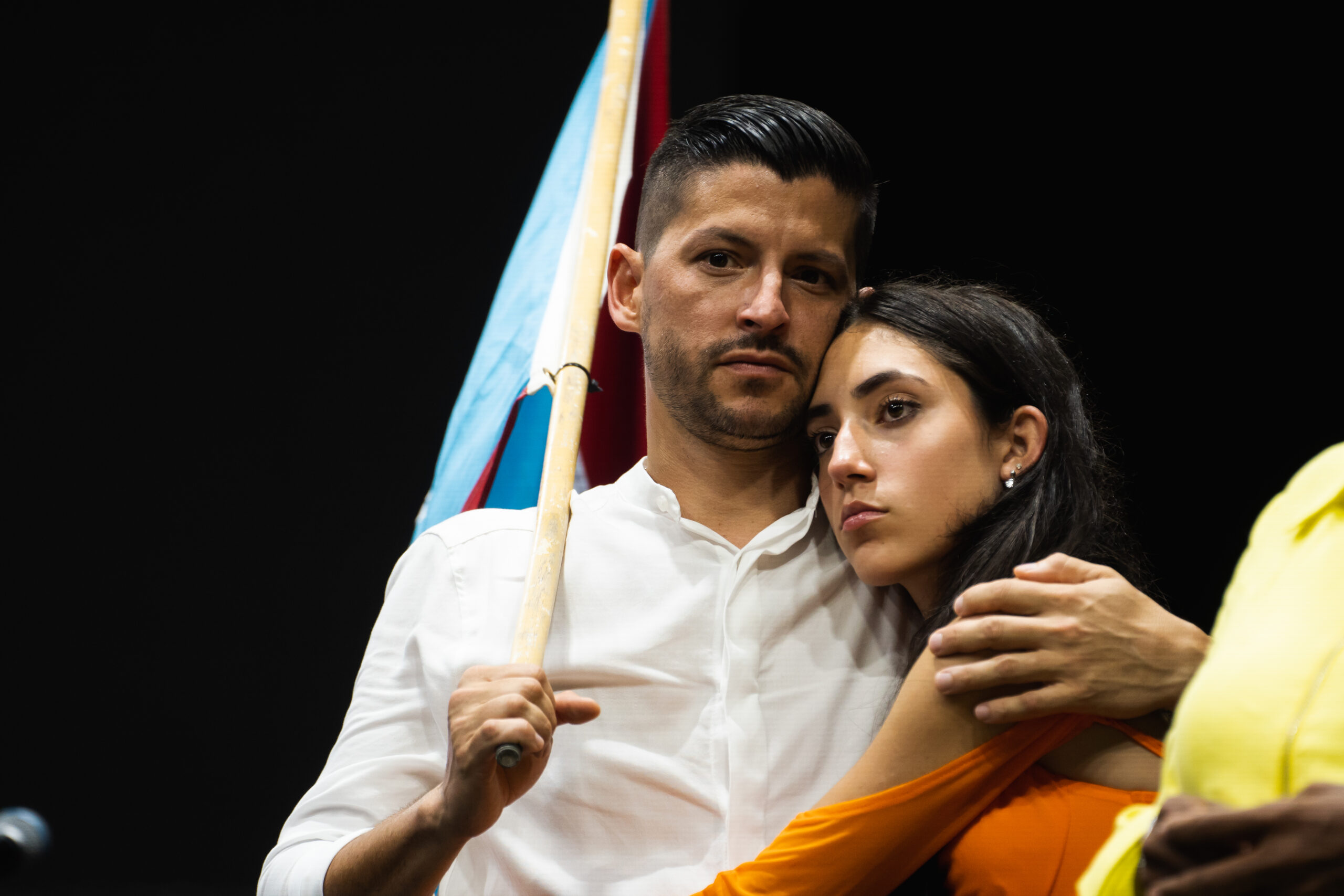 El toro que embiste, ese es mi Borinquen. Pueblo que da la batalla, patria que resiste Con una clara referencia irónica a sus personajes Susa y Epifanio, sendos fanáticos del Partido Nuevo Progresista (PNP) y el Partido Popular Democrático (PPD), los comediantes Víctor Alicea y Carmen Nydia Velázquez animaron el inicio de la actividad.