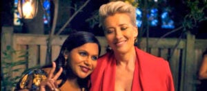 Este filme tiene el conjunto de elementos para contar una historia que estimule el intelecto, las emociones, la distancia y cercanía necesarias que permiten a lxs espectadorxs responder a cada una de las propuestas presentadas. Porque no es solamente que Emma Thompson como Katherine Newbury es altanera, que utiliza su inteligencia para empequeñecer a los que considera inferiores (casi todo el mundo), se cree invulnerable y tan segura de quién es en el mundo de los espectáculos, que queda en ‘shock’ cuando la administración le pide que cambie o quede fuera. Por supuesto, Newbury se recupera muy pronto de esa reacción inicial y arremete contra cualquiera que le impida el paso. Y aquí entra el segundo elemento que eleva esta comedia a dimensiones poco conocidas: Mindy Kaling como Molly Patel, el supuesto token que le dará diversidad al grupo de escritores “all male & all white”. Son dos discursos que parecen nunca coincidir, pero con el pasar del tiempo se fusionan. El resto del equipo de escritores están muy definidos en lo que consideran su aportación al programa, sus relaciones con “la jefa” (Newbury) y sus propias historias que con tan solo pinceladas se dibujan muy bien. ¿Y qué hacer con un personaje como Walter Lovell, interpretado maravillosamente por John Lithgow, que cuenta con muy pocas escenas pero que en cada una revela las dificultades de una relación pública y privada? Pues, disfrutarlo al máximo.