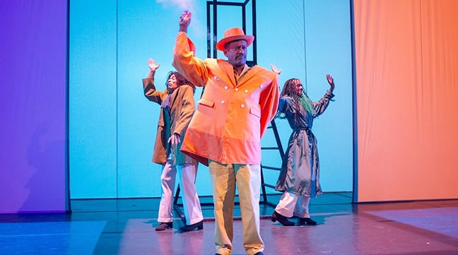 Llegué de Vieques a tiempo para ver lo que se había anunciado como la última función de “Hielo seco” en el teatro Victoria Espinosa el domingo 30 de noviembre. Creada/producida por El Absurdo, la obra me agarró de forma sensible muy particular a través de un mundo de imágenes corporales y texturales, una cartografía de cuerpos enlazados en movimiento, pero también a través de textos narrados y dialogados, y todos envueltos en una riqueza de vestuarios de diversas telas que abrieron ventanas a través de las cuales pudimos compartir tanto las sensibilidades como los imaginarios de los personajes.