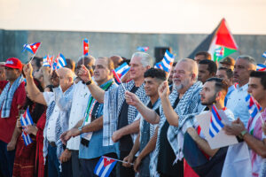 Portando banderas de Palestina y Cuba y pancartas con mensajes como “Palestina Libre” y “Permaneceremos [de pie] como el olivo”, más de 100,000 personas, según cifras oficiales, se movilizaron el pasado 9 de octubre hasta la Tribuna Antiimperialista en La Habana, a escasos metros de la Embajada de Estados Unidos en esta ciudad.