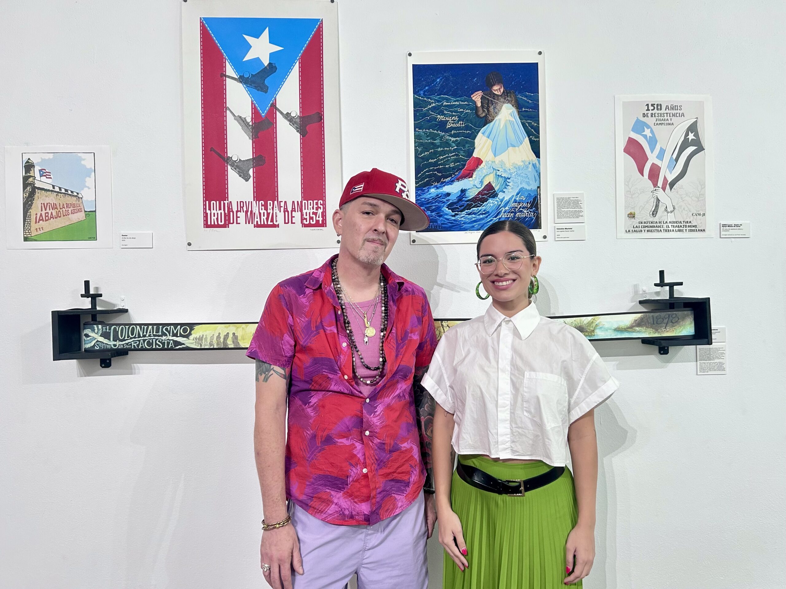 Como ya hemos dicho, la exposición, De AQuÍ NADie NoS SAcA, está inspirada en la residencia de Bad Bunny en PeERRe, No Me Quiero Ir De Aquí. Esta es una exposición articulada desde la resistencia, arte que se produce desde el interior de los movimientos sociales. Tuve el privilegio de hablar brevemente con Aliana Bigio y Jorge Díaz (Cano Cangrejo), de Mijente y AgitArte, respectivamente. Ambos estén claros. Es posible la comodificación del arte, es decir, que el arte se convieta en un objeto de consumo. Así, la capacidad de resistencia se vería comprometida convirtiéndose en un producto más. Sin embargo, la exposición muestra el arte que sale de las comunidades y de las organizaciones, no se trata de productos artísticos desde afuera, siguiendo los intereses del capital.