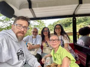 El grupo visitó, el sábado, a Casa Pueblo en una suerte de tren del Municipio de Adjuntas que ofrece viajes alrededor del pueblo. El clima, favorable, repartía una luz que alumbraba desde las copas de los árboles hasta el fondo de los ríos, y todos hablaban de alguna forma sobre su relación con el campo.