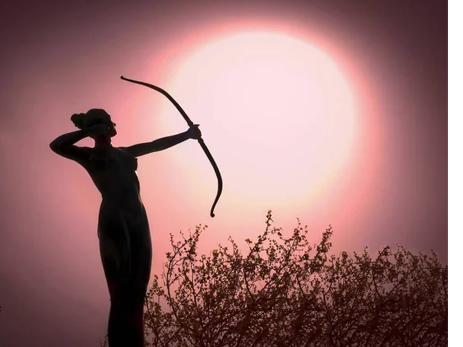 - Diana (Artemis en la equivalencia griega) es la diosa de la fertilidad y el nacimiento, así como la patrona de la luna así como de las criaturas de la naturaleza. Pero sobretodo, Diana es la diosa de la caza, representada en la figura del venado. Pero Diana es diosa, y también amante. Con asistencia de Zeus, besa al joven Endimión y lo sumerge en un eterno sueño, del cual aprovecha para visitarlo una vez al mes. Cuando no hay luna en el cielo, es porque Diana la usa de transporte para llegar hasta su eterno amante. Diana también seduce a la joven Calisto, y como Trivia, una de las manifestaciones de la diosa, se une a Caelus y tienen como hijos a Jano y a Saturno.