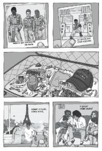 La antología incluye la viñeta “El Maletín”, escrita e ilustrada por Rosaura Rodríguez. En ella, la autora intenta rearticular la vida de un veterano puertorriqueño de Vietnam, a través de sus antiguas pertenencias y restos, en particular, un maletín que la propia Rosaura encontró tirado en una calle en el área metro. Si como apunta la filósofa María Zambrano las ruinas son los aspectos más vivientes de la historia, debido a que “solo vive históricamente lo que ha sobrevivido a su destrucción” (255), en estas breves notas, me interesa estudiar la antología, y más concretamente este cómic, como una suerte de “archivos de los despojos”, cuya definición abarca, por ejemplo, la pluralidad del despojo/ruina, tanto como la acción de extraer y de expoliar. Como archivo del despojo, “El Maletín”, por una parte, resalta, la naturaleza frágil del archivo, y, por otra parte, la relevancia y el valor histórico de la literatura y la gráfica/ cómic como fuente documental y humana que ha encarado continuamente las prácticas carroñeras y rapiñeras de nuestra historia.