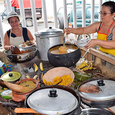Serían las nueve de la noche cuando llegamos caminando al lugar desde el otro lado del río Guadalquivir. Hacía muchísimo calor aunque ya había refrescado bastante. Sedientos y hambrientos entramos buscando algún acomodo razonable y lo encontramos de pie junto a la barra. Una barra larga con tope de madera sólida y decorada la parte baja de su cara con cuadrantes de azulejos azules, blancos y amarillos. Del otro lado del mostrador, de frente al público, se exhibían cual fetiche la típica pata de jamón, varias ruedas de queso y un dulce de membrillo entero aún, que relucía cual bloque de oro a mis ojitos de niña golosa. Desde allí veíamos la puerta abierta de la cocina iluminada y en todo su apogeo. No pude resistir la curiosidad y dejar de mirar hacia allá con insistencia, a pesar de que no quería ser imprudente e incomodar a las señoras que se encontraban en medio de la faena; pero es que allí, en la cocina, ocurría la magia que me transportó a otros momentos de mi vida en los que eran mi madre y otras mujeres amigas las que preparaban sus recetas para otros. Guisaban o freían; freían, freían y freían y guisaban y emplataban para las fiestas que se daban o una vez al año en la casa, como parte de una promesa de Reyes que mi madre tenía de toda la vida, o para aquellas otras en las que simplemente se cocinaba para los hermanos y la familia inmediata. Entonces, en aquella muy pequeña cocina en Sevilla vi cuatro mujeres, una más joven que las otras (parecían tres generaciones a juzgar por el parecido físico que observé entre ellas), vestidas de negro, cómodas, pero peinadas y maquilladas. Llevaban, además, un guante largo de tela gruesa —uno solo— que les cubría desde la mano hasta un poco más arriba del codo. Con él se protegían del calor directo de la candela y de las quemaduras con aceite hirviendo a las que se exponían en todo momento en su ardua, pero bellísima y digna tarea que es dar de comer al otro. Yo me encandilé mirando toda la destreza con la que manejaban el asunto de la cocina y la preparación de los platos, pero además con la gracia y la complacencia con que aquellas señoras lo hacían todo; tanto así que me dieron deseos de meterme allí con ellas para volver a sentir que formaba parte de lo que, en cierto sentido, perdí cuando mami se fue. Aquellas mujeres parecían tener el secreto para quitarle un poquito de calor al infierno ese que, como en la cocina, en ocasiones nos llega a abrasar en la vida. No quiero romantizar, la cocina como trabajo es dura. Pero estas mujeres lo hacían en equipo y con la confianza de quien lleva toda la vida cocinando y lo tienen a orgullo. Toda su operación desde afuera parecía fluir en orden y calmadamente, como si el calor del fogón no las sofocara ni el aceite caliente las intimidara. Ellas eran dueñas y señoras de aquella cocina, así idénticas a un montón de tías, abuelas y madres que conozco. Por eso hallar la belleza y contarla tal como se me presenta es un imperativo insobornable, porque es justo y me salva sobre todo de mí misma. Me salva como me salva el creer que los definitivos son falsos, que no hay nada ni nadie absolutamente malo ni absolutamente bueno, que en lo que se dice feo, grotesco o bruto también habita la belleza. Importante es educar la mirada, dirigirla, enfocarla bien. Saber mirar y agradecer. Me salva también tratar de no pensar como José José dice en una de sus canciones: que “hasta la belleza cansa”. Porque aunque creo entender bastante bien las implicaciones de esta afirmación del cantante mexicano, prefiero no asumirla así sin más, ni en todos los contextos. Además, si fuéramos a hablar de ética y estética con aires de intelectual no sería muy bien visto, tal vez, que les citara una canción de “El triste”, sino que mejor a Hegel y alguno de sus enrevesados pasajes del libro Lecciones sobre la estética, por ejemplo. Pero no, evidentemente eso no es lo que quiero. Solo quise hablar de la belleza que encuentro hay en una cocina llena de mujeres que saben y pueden cocinar con placer y respeto hacia ello. Porque es digno y admirable, porque hay arte en la cocina, talento en sus paladeras que identifican especias y combinan sus sabores como magia efectiva; destreza en sus manos que sazonan y elaboran cada plato. Porque el que los degusta se da cuenta, se alegra y lo agradece. Y hasta llega a escribir sobre eso así como hago ahora o como lo han hecho algunos admirados escritores como los ya desaparecidos Manuel Vázquez Montalbán o Rafael Chirbes. Ambos llegaron a escribir para revistas culinarias. En el caso de Vázquez Montalbán la comida llegó a ser tópico en muchas de sus novelas por no decir que en todas (aún no he tenido el gusto de leerlas todas). Pero, además, escribió libros de cocina y tuvo también un restaurante en Barcelona. ¡Ah, la belleza!