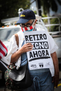 Entre una y otra consigna, los miles de trabajadoras y trabajadores activos y retirados discurrieron por el expreso, primero hacia el lado sur, para bajar y tomar el lado norte y, de ahí, a la avenida Roosevelt hasta llegar frente al edificio que alberga las oficinas del JCF en la Milla de Oro, en Hato Rey. Hubo quienes se quedaron en el camino por lo largo del trayecto, pero la mayoría llegó hasta el final. Una vez en el cruce de la Muñoz Rivera y la Chardón, varios de los líderes sindicales, entre ellos, las líderes magisteriales, Liza Fournier, de UNETE; Migdalia Santiago, de EDUCAMOS, y