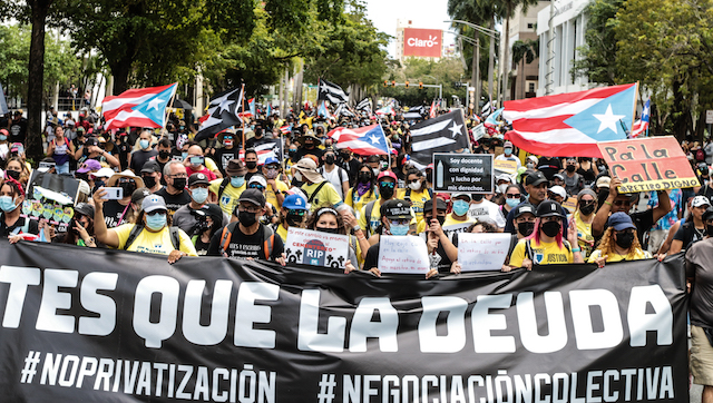 La marcha salió cerca de la 1 de la tarde presidida por una amplia pancarta que leía, “El Pueblo antes de la deuda”.