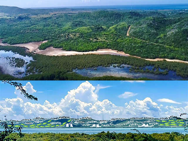 Se presentó evidencia irrefutable de que el Plano Conceptual en la DIA fue alterado. Se cambió el color y la textura del área de humedales colindante a uno de los campos de golf y sección de residencias. De esta forma, se encubren los impactos al manglar y salitrales.