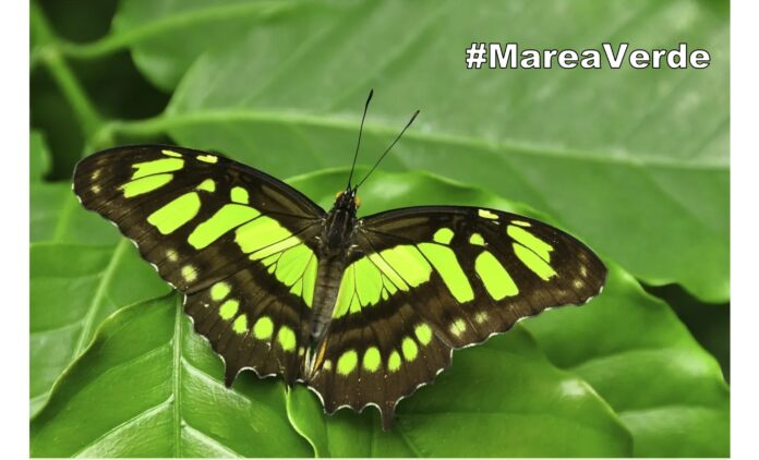 Ante todo ese escenario, a mí me entró la risa, me entró por la nariz con los olores. No podía parar de reírme. Las palabras se me fueron volando otra vez y la mariposa verde (la siproeta stelenes) voló con mi risa y se posó en el culito cagao de la bebé, y los “ca-ca-ca” se hicieron carcajadas. Voló hasta la boca de tío y dejándole un poquito de mierda en el labio, le contagió, también la risa. Luego se posó en la esquinita del ojo de papá y encontró la risa. Después voló hasta el pelo de mamá y le dejó unos rayitos marrones que le devolvieron la calma. Entonces mamá se detiene, me mira a los ojos, nos mira a todos y se une a la marea de carcajadas. Fue un instante de vida plena donde pactaron el amor y la mierda.
