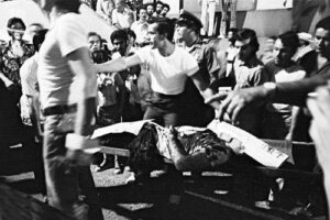 El fotógrafo José Charrón captó el momento que retiran el cadáver de Charbonier del local.