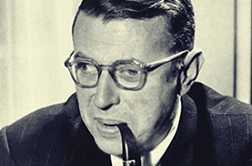 Jean Paul Sartre, filósofo existencialista francés, militante comunista y dramaturgo. En 1964 rechazó el Premio Nobel de literatura, para no comprometer sus posiciones.