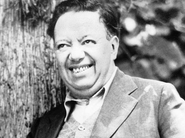 Diego María de la Concepción Juan Nepomuceno Estanislao de Rivera y Barrientos Acosta y Rodríguez, más conocido como Diego Rivera, nació en la ciudad de Guanajuato. Estudió arte en México, España, Francia e Italia. “De regreso a México en 1921, e identificado con los ideales revolucionarios mexicanos, Rivera emprendió un gran proyecto: pintar la historia de su pueblo desde la época precolombina hasta la revolución. … En 1922, Rivera realizó su primera creación mural importante para el Auditorio Bolívar a la que tituló La Creación. En este mural, el pintor quiso plasmar la idea de la creación de los mexicanos y en él se observa a un hombre surgiendo del árbol de la vida. Como anécdota, mientras pintaba esta obra, denostada por los estudiantes de derechas, para protegerse Diego Rivera iba armado con una pistola.” (National Geographic). El militante comunista hizo murales polémicos en EUA y estuvo casado con Frida Kahlo desde 1929 hasta la muerte de ella en 1954.