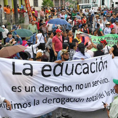 Si hablamos de las condiciones de la escuela pública, debemos decir que madre y padre de familia que matricula a sus hijos está asumiendo la manutención de la escuela en los detalles más pequeños, desde contribuir al pago del servicio de aseo, hasta la compra del detergente; desde la contribución para construir pupitres, hasta la compra de tiza o pintado del salón de clases. Y sumado a este cuadro, un profesor o profesora a quien no se le ha pagado desde hace tres meses y que debe atender -en zonas rurales- hasta tres grados al mismo tiempo luego de haber caminado horas para llegar a la aldea. En una de las escuelas de música estatales, por ejemplo, los niños aprenden a tocar el violín sin violín, el piano sin piano. De eso fui testigo cuando tuve a mi hijo en una de ellas. Mi hijo hacía la mímica con un violín fantasma en su hombro al igual que sus veinte compañeritos.