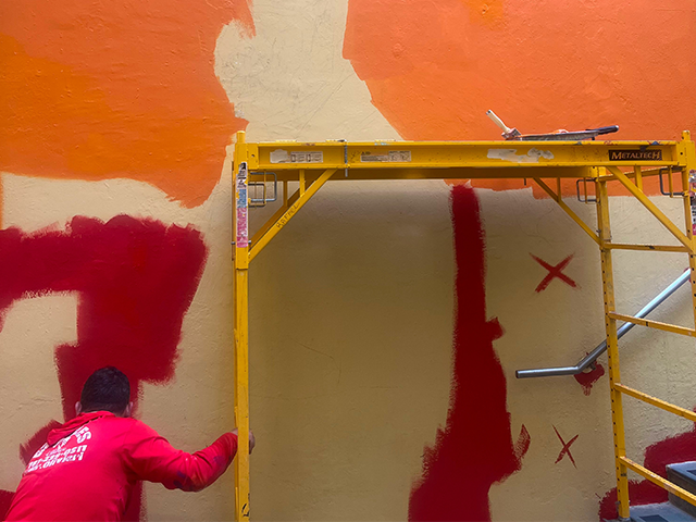 Según explicó Rafique, el mural —que representa la figura de Alicea— consta de tres secciones y fue creado sobre láminas de PVC utilizando diversas técnicas de grabado. “José Alicea es grabador, fue profesor de esta escuela y es un artista que me inspira todos los días. Quiero dejar mi huella donde estudié, dejar un legado y aportar mi granito de arena para las nuevas generaciones, estampando la figura de este gigante del arte en las paredes de esta casa de estudios, alma mater de la gran mayoría de los artistas boricuas”, agregó.