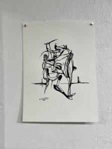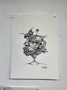Hernández escogió 70 de 137 piezas en su “viaje de 7 meses”, desde que comenzó el proyecto en diciembre del 2024, hasta el pasado mes de junio, para su exposición atada al concepto del consciente e inconsciente, y “donde empieza ser consciente la cuestión”. El artista comenzó todas sus obras con una mancha, a punto fino o regando la tinta. De este modo, abrazando el caos debido a que, según Hernández, “solo el caos da la forma”.