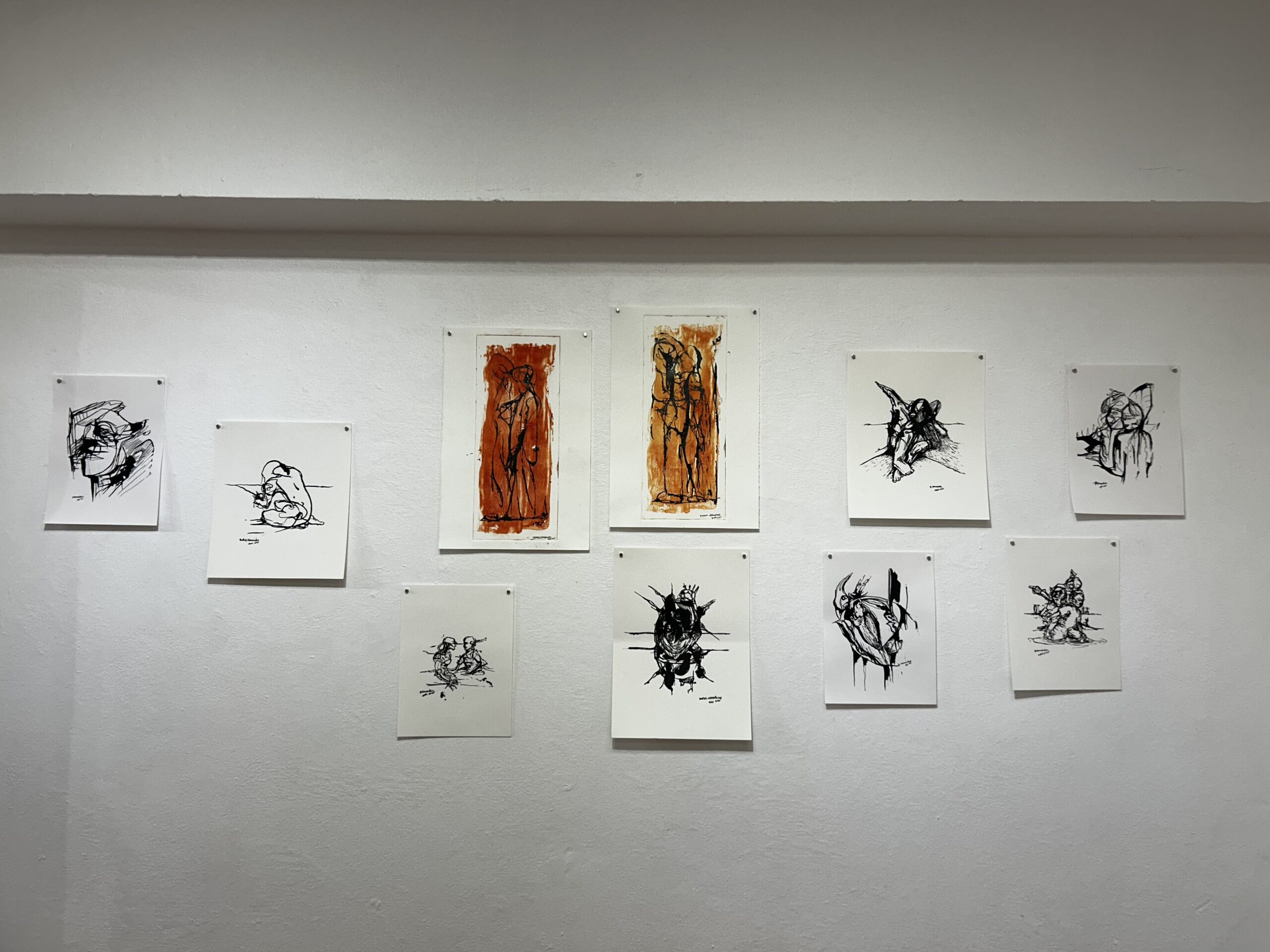 Cada pieza monocromática contenía una libertad agresiva en la tinta, proponiendo imágenes que aparentan nacer y desaparecer ante cada mirada; involucrando al espectador en un juego visual.