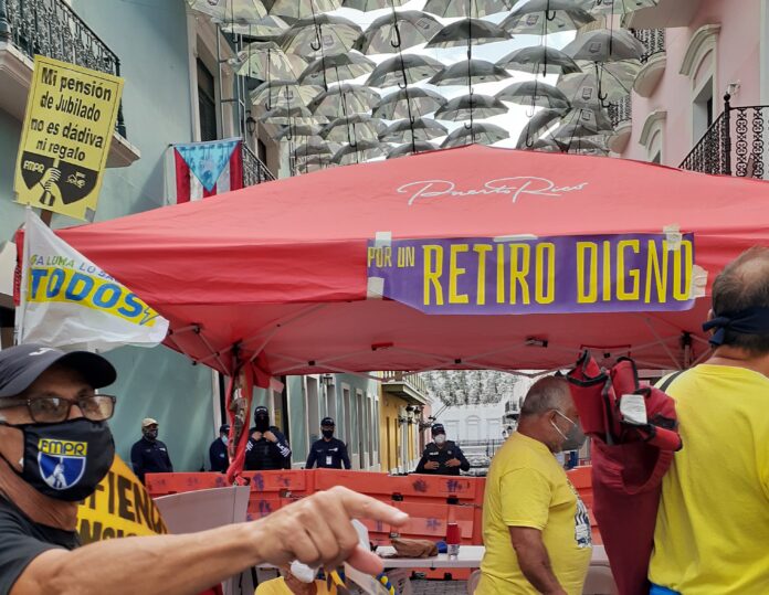 El gobernador, Pedro Pierluisi, tenía hasta este martes, ocho de junio, para decidir si protege o no las pensiones de miles de jubilados y jubiladas del Gobierno de Puerto Rico o si condena a estos a la pobreza. Desde el fin de semana, miembros el Capítulo de Jubiladas y Jubilados de la Federación de Maestros (FMPR), del Frente en Defensa de las Pensiones (FDP) y del grupo Construyamos otro Acuerdo (COA) se mantenían en un campamento frente a los portones de La Fortaleza para demandar que el gobernador firme el proyecto PC 120, Ley por un Retiro Digno.