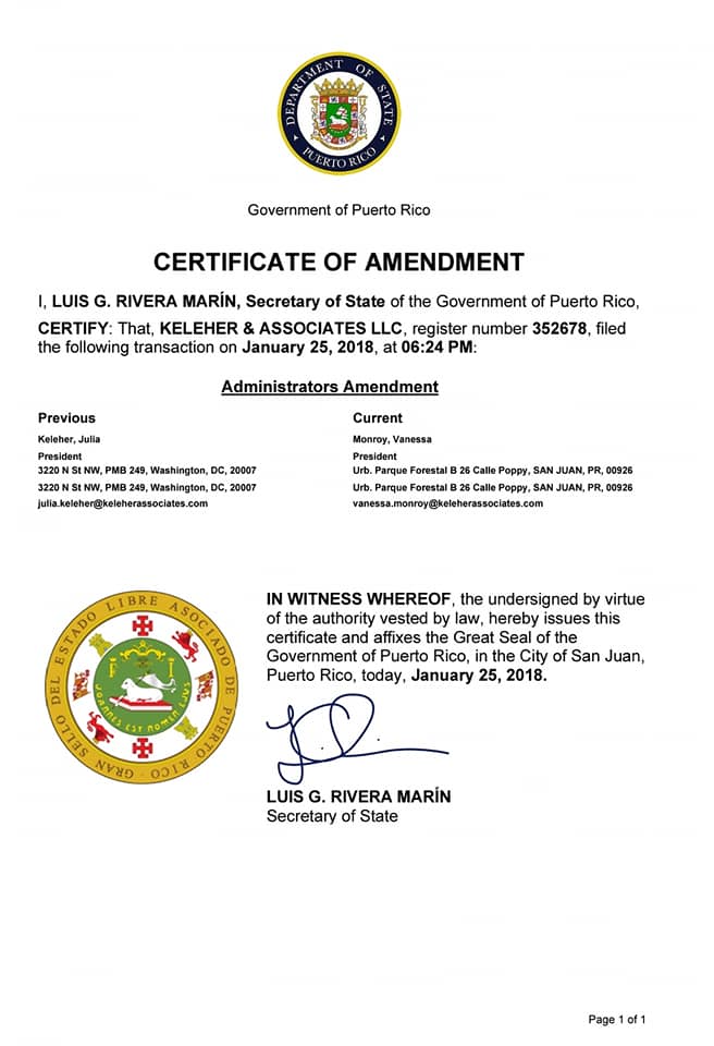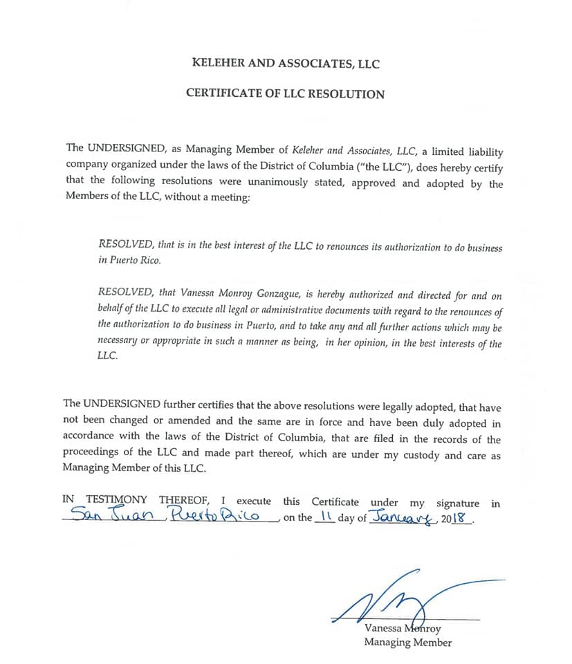 El 11 de enero de 2018, a poco más de dos meses del huracán María, Julia Keleher pasa a Vanessa Monroy su compañía. El 25 de enero de 2018 registran la transacción en el Departemento de Estado. ¿Quiere decir que Julia Keleher se mantuvo al frente de la compañía en el 2017, siendo secretaria del Departamento de Educación?