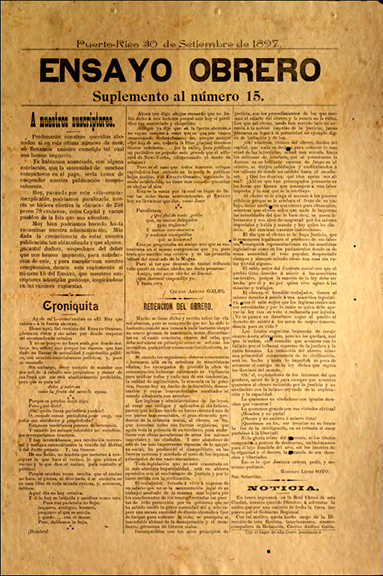 El sector artesanal de los trabajadores se organizó con el nombre de Ensayo Obrero en 1897; fue el nombre que dieron también a su periódico cuyo primer número se publicó el 1ro de Mayo de ese año, en conmemoración del Día Internacional de los Trabajadores. En donde quiera que el capitalismo se fue implantando los artesanos, por sus oficios diestros y nivel cultural alfabetizado, formaron vanguardias de los trabajadores en general. Extraño no es que en todas partes los tipógrafos estuvieran en las más tempranas luchas de asalariados frente al capital. También hay un antecedente más lejano en Puerto Rico: “La primera huelga de tipógrafos habida en el país fue en el año 1840 y ocurrió en los talleres del Boletín Mercantil, siendo director propietario de dicha publicación el señor Guimbernat, Secretario de la junta de Fomento. Hubieron de componer el periódico el mismo propietario y miembros de su familia” (La Democracia 13 diciembre 1898, p. 3). Aquí figura una instancia inusitada de la propia familia propietaria en función rompe-huelga. Al grupo dirigente artesanal de finales del siglo 19 pertenecieron, entre otros, José Ferrer y Ferrer, Ramón Romero Rosa, Eduardo Conde, Fernando Gómez Acosta, Eugenio Sánchez López y Santiago Iglesias, joven español radical llegado a Puerto Rico a finales de 1896. Al defender a la clase obrera y denunciar la explotación en general de los trabajadores, hombres y mujeres, Ensayo Obrero fue recibido con hostilidad y burla por parte de las clases contrincantes y dominantes. Para los obreros fue motivo de celebración cultural. En la noche del 3 de agosto: “pasó una comisión de artesanos y braceros acompañados de la orquesta que dirigen los señores Muriel y Nieves, a la redacción de Ensayo Obrero, donde se estrenó una preciosa danza titutala «El Ensayo Obrero» y dedicada por su autor don Cecilio Andino Galés a los redactores de aquel periódico, los cuales obsequiaron cumplidamente a la concurrencia” (La Correspondendia de Puerto Rico, 4 agosto 1898, p. 3). De la iniciativa de Ensayo Obrero brotó, ¡una danza obrera!