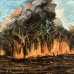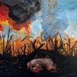 La obra de Jean “Baco” Ortiz contenida en la exposición “La fortuna del incendio” ofrece una mirada casi caleidoscópica sobre el fuego y sus significados. En su paleta el folklore, la cultura, la historia y la vida convergen en una sola sensibilidad que abrasa las pupilas de los contemplan su obra. Es, además, una invitación, a repensar nuestro paisaje ya no con lo que miran los ojos, sino con lo que arde oculto en el resplandor de las flamas. Más aún, esta exposición logra ubicar al espectador en la incómoda disyuntiva de preguntarse sobre el significado del fuego en su propia vida. ¿Qué debe arder? ¿Qué se purifica las llamas? ¿Qué se reduce a cenizas? ¿Qué despierta glorioso y lleno de vida del fondo del incendio de la existencia? La visión de Jean “Baco” Ortiz se expande en un viaje de múltiples direcciones guiado exclusivamente por el dictamen del fuego. La exposición: “La fortuna del incendio” se presenta en Casa Silvina, Humacao.