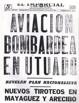 *Aviones de la Guardia Nacional de las fuerza aerea de Estados Unidos bombardean la población civil de Utuado y Jayuya.