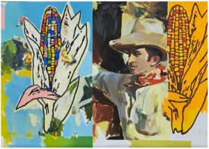 Dentro de sus proyectos más recientes, la serie “Aleatorio” (2023) surge como una introspección a través de símbolos y recuerdos armados a través de la yuxtaposición de imágenes de cultura popular. Utiliza la solidez y uniformidad de su paleta de colores brillantes para rememorar tanto a la tradición de obra gráfica puertorriqueña como al pop-art. Son imágenes que comparten el espacio del lienzo en relación dialéctica, forzando el diálogo entre espacios, como instantes de pensamientos y memorias sueltas, que se hilvanan con el tiempo y la mirada. Detrés deja ver su imaginario, sus asimilaciones a través de imágenes. Presenta un cuestionamiento a las narrativas imperantes sobre los símbolos, recontextualizando así sus significados (en corriente postmoderna). Lo más notable es su reformulación de los símbolos del “viejo oeste”.