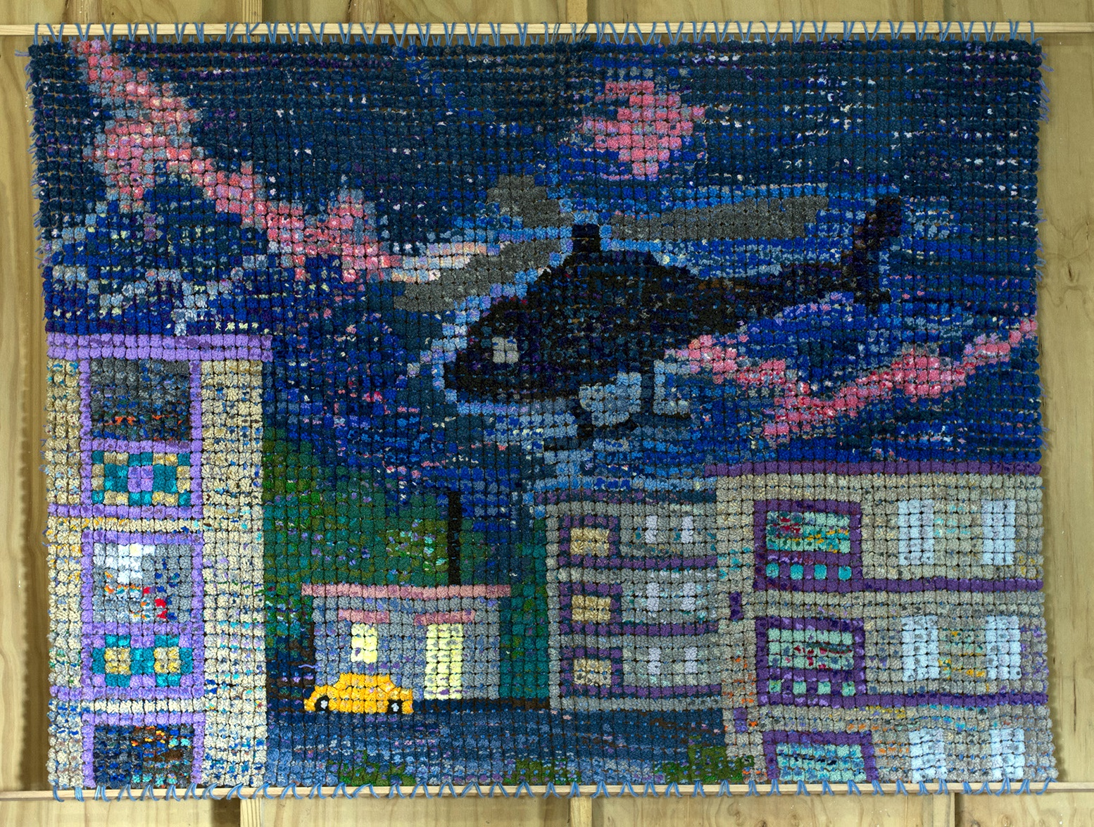 El mundo que se nos proyecta a través del color es un mundo más o menos plano y que sólo al mirar desde lejos podría crear una ilusión de perspectiva. Sólo que este mundo no descansa en la perspectiva aérea o lineal sino en la relación que existe entre la solidez formal de las imágenes, y la combinación narrativa de lo cotidiano-callejero (su aspecto urbano, social, de la «vida externa», el ruido mundano) con su modalidad «mágica», donde la presentación de los sucesos de la difícil y dura vida en el barrio se hace «liviana», como si su interlocutor fuera un niño que asiste a entender la realidad a través de un cuento de hadas. Para mí, es éste el aspecto que más invita a la mirada, al pensamiento, a la emoción; el más profundo, más mental, más simbólico y más extraño que surge de estas composiciones. No es, entonces, la reducción del color a una mera sensación retinal o su carácter de narración cotidiana lo que yo más valoro en estos tapices sino cómo lo cotidiano se nos ha devuelto como extrañeza y poesía. Esta extrañeza poética, este espectro de lo mítico, traspasa, para bien o para mal, el mensaje, la prédica, el apelar a la consciencia o simpatía del espectador.