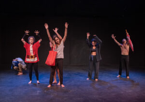 Entramos al anfiteatro Julia de Burgos con la expectativa de ver representados algunos asuntos que evoca el título. La «nada» puede ser interpretada como un espacio vacío, lo que invita a reflexionar sobre la existencia y el significado de la ausencia. ¿Qué implica tener una tienda de algo que no existe? O en su defecto, ¿no implica la nada una falta que hay que llenar? Brillantemente -¿por su ausencia?- el espacio del Julia de Burgos se abría a la oscuridad y a la “falta” relativa de escenografía. Poderosa forma de activar la imaginación de los espectadores con el texto y la coreografía.