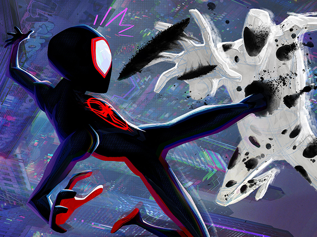 Spider-Man: Across the Spiderverse cuenta con una animación caóticamente bella que combina elementos tan diversos como el arte de comics, el graffiti, el steampunk, la estética punk británica de los 70, el expresionismo y la animación de televisión de los 80 y 90, entre muchos otros estilos. Cada universo tiene su propia estética. Por esto, mientras el Manhattan de Miles Morales es un retrato animado de nuestra realidad, el Mumbattan del Spider-Man indio, Pravitr Prabhakar (voz de Karan Soni), es una urbe de varios niveles con edificios que parecen tambalearse por la sobrepoblación. Por otro lado, el oscuro Manhattan de una realidad en que nunca existió Spider-Man contrasta con los sutiles colores de acuarela del Manhattan de Gwen Stacy. El mundo de Gwen Stacy tiene la particularidad de responder a sus estados anímicos, desligando un ambiente expresionista de su tradicional oscuridad. En una secuencia memorable, Gwen regresa a donde su padre para tener una conversación difícil sobre su identidad. Mientras hablan, los colores de acuarela se derriten a su alrededor, reflejando las lágrimas que Gwen y su padre llevan en su interior. No deja de maravillarme cómo una película animada de superhéroes toca temas tan profundos como la identidad racial y queer, manifiesta un comentario sobre el canon literario y sus rupturas, explora la animación de formas tan innovadoras y nunca deja de ser una emocionante aventura de Spider-Man. Les recomiendo que primero vean la anterior, Spider-Man: Into the Spiderverse, para que entiendan la historia. Luego, busquen la pantalla más grande que encuentren para que se pierdan en los universos de Spider-Man: Across the Spiderverse.