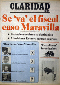 Los elementos de esa primera conspiración que culminó en la ejecución de Rosado y Soto no se conocerían hasta mucho más tarde, pero juntando la poca información pública de lo sucedido en Villalba con lo que se sabía sobre cómo operaba tanto la Policía como el gobierno de Romero Barceló, CLARIDADy la dirección del PSP no tuvieron dudas sobre lo que realmente había ocurrido en el Cerro Maravilla. Aquel 25 de julio fue martes y en la edición que comenzó a circular tres días después el titular de la noticia resumía exactamente lo que había ocurrido: “Policía asesina jóvenes; desata ofensiva represiva”. El periodista Luis Fernando(Peri) Coss reseñaba lo ocurrido, incluyendo el arresto el 26 de julio de los otros jóvenes que había logrado entrampar González Malavé. La noticia citaba a Juan Mari Brás, secretario general del PSP, afirmando que se trataba de un “crimen burdo” cometido por la Policía. La siguiente edición, fechada 4 de agosto, era aún más contundente. El titular de portada decía: “El País condena la masacre; Romero solo”. También en portada se reproducía una foto de un piquete celebrado frente a la Fortaleza el miércoles anterior “en protesta por la masacre del Cerro Maravilla.”