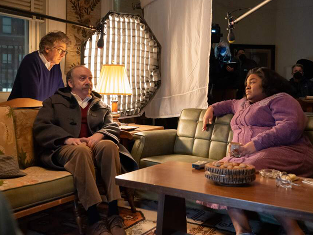 En The Holdovers, Paul Hunham (Paul Giamatti) es un maestro de historia clásica en un colegio exclusivo de Massachusetts. Hunham es un hombre algo derrotado y cínico cuya soledad lo ha inspirado a encontrar compañía en el whiskey mientras tortura a sus estudiantes. Como es un internado, Hunham es escogido para permanecer durante las vacaciones de Navidad cuidando de los estudiantes cuyos padres los han dejado atrás. El maestro se ve obligado a pasar su Navidad junto a la jefa de la cocina, Mary (Da’Vine Joy Randolph), una mujer de una dignidad férrea y con un pasado trágico. Hunham y Mary velan por Angus (Dominic Sessa), un adolescente que no soporta al maestro y que solo quiere viajar a Boston en busca de su pasado. La cinematografía de la película a cargo de Eigil Bryld nos trasporta desde los monumentales interiores clásicos de un colegio para familias privilegiadas, a los exteriores cubiertos de nieve de Massachusetts. Payne y Bryld retratan un espacio cuya inmensidad resalta la soledad de Hunham, Mary y Angus. Cuando estos salen de los confines protegidos del colegio, los tres personajes enfrentan sus pasados y sus traumas de maneras únicas. Sus interacciones, que hacen evidente el talento de los tres actores, son el centro de la película. Las discusiones entre Angus y su maestro, la sinceridad de Mary cuando conversa con Hunham, y la empatía con la que la cocinera vela por el joven son el centro emocional de la historia.