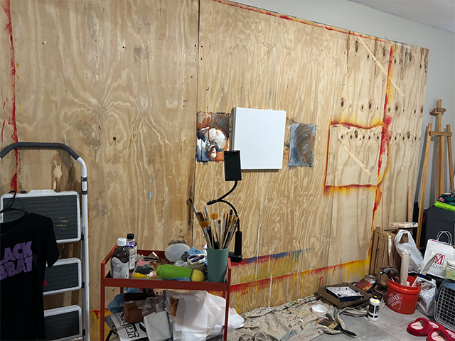Arianna Rosario levantó tres paneles de madera al fondo de su cuarto. Sobre ellos: papeles, lienzos, pomos de pintura, pinceles; es un espacio íntimo, pero a su vez dinámico, extrovertido, en el que se mueve rápida, pequeña, ágil. Saca una caja de abajo de su cama, busca en ella una carpeta, «algo que me encanta del grabado es su multi-ejemplaridad,», «¿Por qué?» le pregunto. «La obsesión. Son pensamientos que se repiten y se repiten y se repiten.»