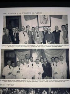 Este es el caso de la visita del crucero alemán, Meteor. El Mundo así lo reseñaba el jueves 10 de febrero de 1938. Las “Sociedades Españolas de Puerto Rico” habían obsequiado con vino de honor a la oficialidad y a los “hombres de ciencia” que viajaban en la nave. Don Manuel Gómez López, vicepresidente de la Casa de España, levantó su copa para brindar por el “Honorable comandante Hain (…) como prueba personal de afecto hacia vosotros y de simpatía de nuestra patria a la vuestra”. Las imágenes reproducidas en los periódicos de la isla, en la revista Puerto Rico Ilustrado muestran el ágape en el que los más granado -es una broma- de la sociedad española e insular regalan sus mejores sonrisas a los invitados.