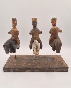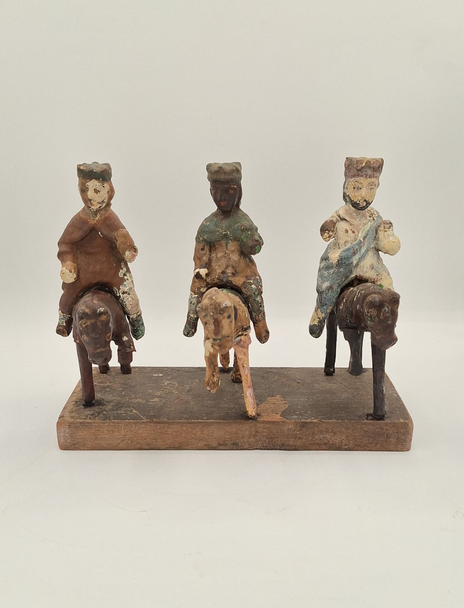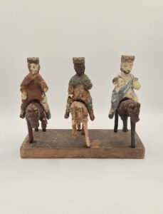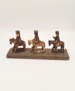 JGT: Estaban en una esquina y no sabía que hacer con ellos y llamó a Miguel Rodríguez, un amigo en común que teníamos en el Viejo San Juan y él le dio mi teléfono. El señor me llamó, quedamos en encontrarnos y abrió el baúl de su auto. Cuando me enseñó todo, los reyes, todo un poco disparatados, porque estaban fuera de los caballos. Los llevé a Orocovis, donde Antonio Avilés (tallador de renombre) y me los ensambló nuevamente.
