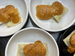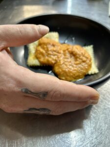 Su semana arranca los martes, cuando va a hacer la compra y a seleccionar ella misma el producto: Aquí no hay cajas sorpresas. “No me gusta eso de no ver lo que me traen”. Entonces, el miércoles en la mañana se mete a su lugar feliz y comienza el laboratorio. “Me llegan las ideas y yo las sigo”. Lo suyo es una cocina espontánea. Con frecuencia algún cliente le comenta que aquel plato le recordó un ser querido, un momento, una etapa. Dice estar convencida de que quienes la visitan van “porque tenían que llegar”. Por eso se deja llevar por un instinto, “por una voz”. A mi me pasó con el caldito de pollo con bolsas de mofongo. Era el caldo de abuela Camelia. El que llevo años tratando de imitar y que no se me da ni con gallinas del patio. Pero no se equivoque. Esto es una cocina compleja. Cada plato impone varias capas de elaboración: Un alligot de malanga y batata, unas zanahorias caramelizadas para bañar los raviolis de churrasco, la carne ahumada, característica de la zona y que le prepara su tío, la que se vuelca sobre un risotto de limón. Y si ve algo que le llama la atención en el menú, mejor tome la ruta larga y verde en dirección a Barranquitas, aun sin el atirantado, porque el miércoles comienza a impresionar al público con una nueva propuesta de menú, el cual nunca repite.