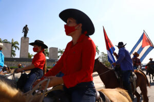En bicicletas, motos o a caballo, desde portales, aceras o balcones, los villaclareños participaron de la denominada ‘Caravana Contra el Bloqueo’, que se extendió por varios kilómetros en el centro de la icónica ciudad –albergue de los restos de Ernesto Che Guevara–, y que vio acciones similares también en la provincia de Las Tunas (este) y en La Habana.