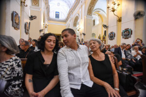 Deseo en este momento y desde esta Catedral expresar mi agradecimiento y el de mi hijo Rafael al Arzobispo de San Juan, monseñor Roberto Octavio González, por su cariño y atenciones con nuestra familia; a monseñor Álvaro Corrada del Río, Obispo de Mayagüez; a los sacerdotes concelebrantes, a los monaguillos y a todos los religiosos y religiosas presentes. Muy especialmente, agradecemos a los compañeros y compañeras de Servicios Funerarios Católicos en San Juan y Mayagüez. A ellos entregamos el cuerpo de nuestro amado Rafael en la noche del 2 de marzo. Nos han acompañado con el mayor respeto, nos han cuidado, apoyado en los momentos más difíciles, pero sobre todo, cuidaron a Rafael con profundo amor durante esta larga jornada. Para ellos, para cada uno de ellos y ellas, nuestro más grande reconocimiento y profundo agradecimiento.