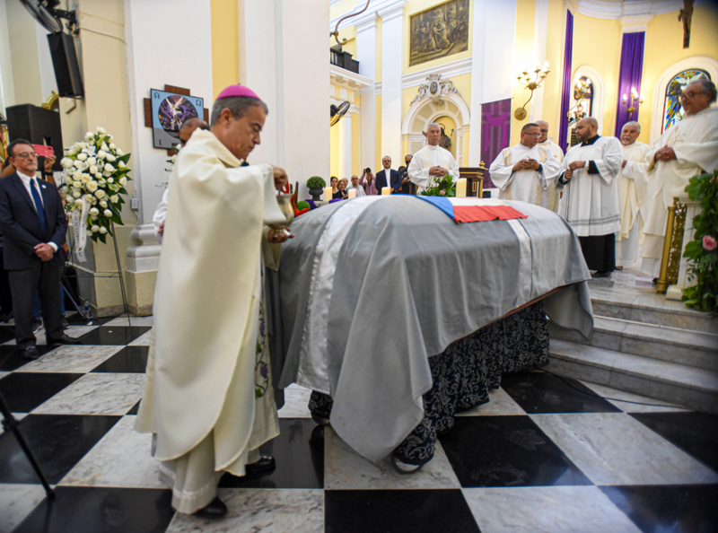 Por su parte, el 8 de marzo de 2020, monseñor Álvaro Corrada del Río, en la Catedral de Mayagüez, también pronunció un mensaje alentador para la descolonización de la Patria. Junto al obispo de Mayagüez, el féretro fue recibido por miembros del clero católico, entre ellos, el sacerdote eternamente patriota, Rafael “Felo” Torres Oliver. En varias ocasiones, el obispo invitó a la feligresía a vociferar la emblemática consigna albizuista “La Patria es valor y sacrificio”. Su homilía gozó de elementos promisorios e invitó al esfuerzo colectivo a favor de la lucha patriótica. El obispo dijo que Puerto Rico “es la tierra prometida nuestra” …Y ha tomado y tomará cientos de años, pero ninguna de ustedes, ninguno de ustedes, renuncie a ese futuro”.[9]