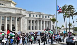 Miembros de la comunidad Palestina en la Isla, junto a puertorriqueños y puertorriqueñas, se manifestaron este domingo 16 de mayo en solidaridad con el pueblo Palestino, que desde ya hace dos semanas ha sido objeto de ataques aéreos por parte del ejército del Estado de Israel. Los ataques, de una fuerza militar desigual por parte de Israel, habían dejado más de 100 muertos palestinos, hasta el momento de esta nota. La mayoría de ellos, niños.
