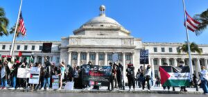 La manifestación convocada mediante las redes sociales fue lanzada por jóvenes nacidos en la Isla, de padres palestinos. La presencia de jóvenes y niños de origen palestino fue predominante. Aunque durante un poco más de las dos horas que se mantuvo la manifestación frente al Capitolio, en la que se agitaron banderas de Palestina y de Puerto Rico, no hubo ningún mensaje de parte de alguna organización. La protesta estuvo animada por los jóvenes, quienes gritaban consignas en español, en inglés y, en ocasiones, en árabe.
