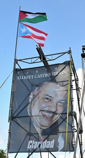 Estamos aquí para honrar la bandera de Palestina, izándola junto a nuestra monoestrellada, como símbolo de la hermandad y la solidaridad entre Palestina y Puerto Rico.