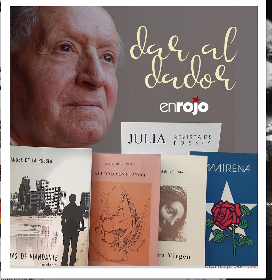 Nunca visité su casa ni compartimos un café. En rigor, no puedo reclamar que fuimos amigos. Me matriculé en uno de los cursos de literatura que daba en la Universidad de Puerto Rico, y me di de baja al poco tiempo: no fue mi maestro. Tampoco editó ninguno de mis libros. Le conocí por aquellos años cuando yo era una estudiante de periodismo que trabajaba en “Hoy en las noticias” de Radio Universidad de Puerto Rico, empezaba a escribir versos tímidos, y él producía “Revista Oral de Poesía”. En alguna ocasión, sustituí en la lectura de textos a la poeta y colaboradora habitual del programa, Magaly Quiñones; es este mi único recuerdo de algo que él me habría agradecido y a lo que correspondió con una simpatía y generosidad mayor que mi gesto. Hoy dedico unas líneas a Manuel de la Puebla (1924-2021), poeta palenciano que residió y fundó familia en Puerto Rico, país cuya poesía conoció a fondo y promovió con persistencia.